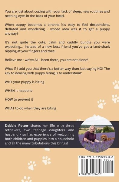 If you're considering buying this book you've probably got a young puppy. There's nothing quite like the soft, sweet smelling, fluff and fun of a puppy - you may well be tired from sleepless nights and constantly running around after them, but I promise it will be worth it! Puppies come with a whole host of challenges and one of the first, and most painful, is puppy biting. I hope you find this book invaluable in helping you to overcome the initial struggles and allow you to move on to the next part of your journey together.
