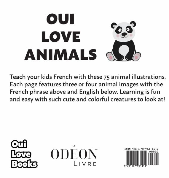 Teach your kids French with these 75+ animal illustrations. Each page features three or four animal images with the French phrase above and English below. Learning is fun and easy with such cute and colorful creatures to look at!