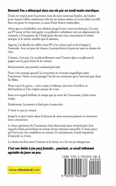 Bennett Fox a débarqué dans ma vie par un lundi matin merdique. J'étais en retard pour le premier jour de mon nouveau boulot, un boulot pour lequel j'allais maintenant devoir me battre même si j'avais déjà travaillé huit ans pour le remporter, à cause d'une fusion inattendue. Alors que je trimballais mes affaires jusqu'à mon nouveau bureau, j'ai reçu un PV pour m'être mal garée. La policière verbalisait tout un alignement de voitures, à l'exception de l'Audi garée devant moi, exactement la même marque et le même modèle que la mienne. Agacée, j'ai décidé de refiler mon PV à la voiture qui avait échappé à l'amende. Avec un peu de chance, le propriétaire le paierait sans se douter de rien. L'ennui, c'est que j'ai accidentellement cassé l'essuie-glace en glissant le papier sur le pare-brise de la voiture. Sérieusement, ma journée commençait mal. Tout s'est arrangé quand j'ai rencontré un homme magnifique dans l'ascenseur. Nous avons partagé l'un de ces moments qui n'arrivent que dans les films. Vous voyez le genre... votre corps s'embrase, des feux d'artifice se déclenchent et l'air crépite autour de vous. Sous son regard brûlant, le temps que je sorte de l'ascenseur, j'étais toute rouge. Finalement, la journée n'était pas si mauvaise. C'était ce que je croyais. Jusqu'à ce que j'entre dans le bureau de mon nouveau patron et rencontre mon concurrent. Le beau spécimen de l'ascenseur était désormais mon ennemi juré. Son regard n'était pas brûlant en raison d'une attirance mutuelle. C'était parce qu'il m'avait vue vandaliser sa voiture. Et maintenant, il était impatient d'anéantir sa rivale. La limite est fine entre l'amour et la haine, et c'est un jeu dangereux. C'est une limite à (ne pas) franchir... pourtant, ce serait tellement agréable de jouer un peu.