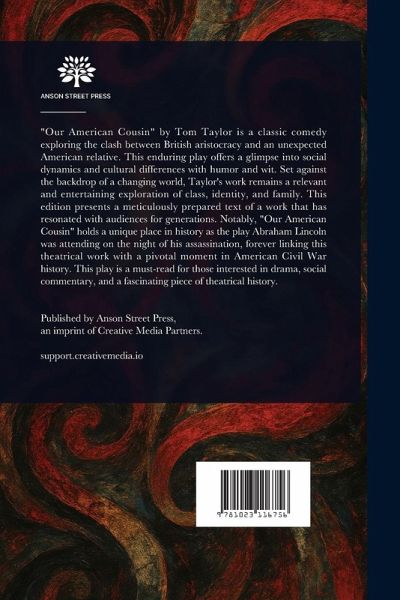 "Our American Cousin" by Tom Taylor is a classic comedy exploring the clash between British aristocracy and an unexpected American relative. This enduring play offers a glimpse into social dynamics and cultural differences with humor and wit. Set against the backdrop of a changing world, Taylor's work remains a relevant and entertaining exploration of class, identity, and family. This edition presents a meticulously prepared text of a work that has resonated with audiences for generations. Notably, "Our American Cousin" holds a unique place in history as the play Abraham Lincoln was attending on the night of his assassination, forever linking this theatrical work with a pivotal moment in American Civil War history. This play is a must-read for those interested in drama, social commentary, and a fascinating piece of theatrical history. This work has been selected by scholars as being culturally important, and is part of the knowledge base of civilization as we know it. This work is in the public domain in the United States of America, and possibly other nations. Within the United States, you may freely copy and distribute this work, as no entity (individual or corporate) has a copyright on the body of the work. Scholars believe, and we concur, that this work is important enough to be preserved, reproduced, and made generally available to the public. We appreciate your support of the preservation process, and thank you for being an important part of keeping this knowledge alive and relevant.