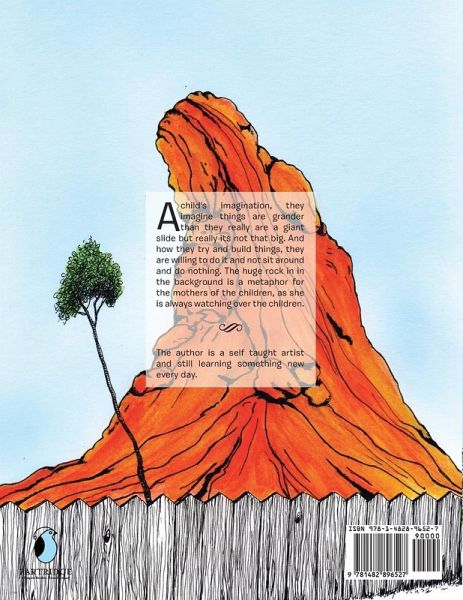 A child's imagination, they imagine things are grander than they really are a giant slide but really its not that big. And how they try and build things, they are willing to do it and not sit around and do nothing. The huge rock in in the background is a metaphor for the mothers of the children, as she is always watching over the children.