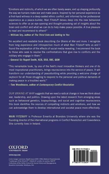 Our Brains at War: The Neuroscience of Conflict and Peacebuilding suggests that we need a radical change in how we think about war, leadership, and politics. Most of us, political scientists included, fail to appreciate the extent to which instincts and emotions, rather than logic, factor into our societal politics and international wars. Many of our physiological and genetic tendencies, of which we are mostly unaware, can all too easily fuel our antipathy towards other groups, make us choose 'strong' leaders over more mindful leaders, assist recruitment for illegal militias, and facilitate even the most gentle of us to inflict violence on others. Drawing upon the latest research from emerging areas such as behavioral genetics, biopsychology, and social and cognitive neuroscience, this book identifies the sources of compelling instincts and emotions, and how we can acknowledge and better manage them so as to develop international and societal peace more effectively.