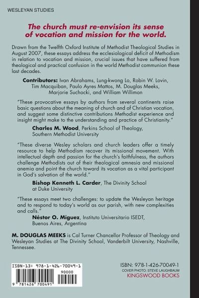Drawn from the Twelfth Oxford Institute of Methodist Theological Studies in August, 2007, these essays address the ecclesiological deficit of Methodism in relation to vocation and mission, crucial issues that have suffered from theological and practical confusion in the world Methodist communion these last decades. The authors enter into an uncommonly honest dialogue across the global divides and press urgent questions about how world Methodist and Wesleyan churches can regain a biblically sound view of mission and ecumenism without traits of colonialism. The answer from all continents is that this revitalization must and, in fact, is beginning in the congregation around revived practices of vocation and sanctification. The essays are suffused by a sense of realism about the church in a changing world economy and geopolitics and a contagious encouragement through the gospel and Wesleyan traditions that world Methodism can be revived in genuine connection. Contents 1. M. Douglas Meeks: A Home for The Homeless: Vocation, Mission, and church in Wesleyan Perspective2. William Willimon: What If Wesley Was Right? 3. Lung-Kwong Lo: Ecclesiology from the Perspective of Scriptures within Wesleyan and Asian Contexts 4. Tim Macquiban: Work On Earth and Rest in Heaven: Toward A Theology Of Vocation in the Writings of Charles Wesley 5. Ivan Abrahams: "To Serve the Present Age, Our Calling to Fulfill:: A Different Church for a Different World 6. Marjorie Suchocki: Christian Perfection: A Methodist Perspective on Ecclesiology 7. Robin W. Lovin: , Human Rights, Vocation, and Human Dignity 7. Paulo Ayres Mattos: "The World Is My Parish. Is It?" Wesleyan Ecclesio-Missiological Considerations from a Contemporary Latin American Perspective