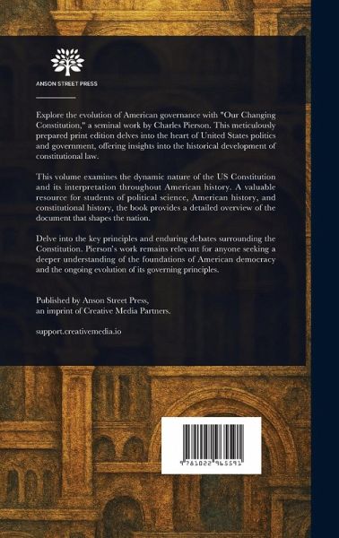 Explore the evolution of American governance with "Our Changing Constitution," a seminal work by Charles Pierson. This meticulously prepared print edition delves into the heart of United States politics and government, offering insights into the historical development of constitutional law. This volume examines the dynamic nature of the US Constitution and its interpretation throughout American history. A valuable resource for students of political science, American history, and constitutional history, the book provides a detailed overview of the document that shapes the nation. Delve into the key principles and enduring debates surrounding the Constitution. Pierson's work remains relevant for anyone seeking a deeper understanding of the foundations of American democracy and the ongoing evolution of its governing principles. This work has been selected by scholars as being culturally important, and is part of the knowledge base of civilization as we know it. This work is in the public domain in the United States of America, and possibly other nations. Within the United States, you may freely copy and distribute this work, as no entity (individual or corporate) has a copyright on the body of the work. Scholars believe, and we concur, that this work is important enough to be preserved, reproduced, and made generally available to the public. We appreciate your support of the preservation process, and thank you for being an important part of keeping this knowledge alive and relevant.