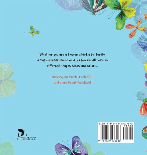 Whether you are a flower, a bird, a butterfly, a musical instrument, or a person, we all come in different shapes, sizes, and colors...making our world a colorful and more beautiful place!