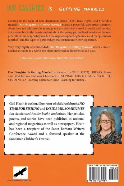 Beautifully rendered with vividly colorful pictures, OUR DAUGHTER IS GETTING MARRIED is a book written for children. It is about two young women in love and getting married. This much-needed picture book, written in rhyming form, captures the essence of supportive families and explains the joining of two female partners who begin a voyage of love and togetherness. The rhyming words and colorful pictures unfold to reveal a story of love and harmony enjoyed by all family members. It begins when one of the mothers receives a phone call from her daughter telling of her intentions to get married. The reader is taken on an exciting journey of selecting wedding rings, choosing gowns, sending wedding invitations, deciding on flowers and the wedding cake, decorating the reception hall, and finally joining in the final vows to become partners for life. This is followed by the father-daughter dance and the reception itself. OUR DAUGHTER IS GETTING MARRIED is a powerful message for the real-life circumstances of many members of the LGBTQ community. It brings harmony and common sense and will do much to remove divisiveness. Told with incredible sensitivity, this story will change how some people will view marriage-especially an LGBTQ marriage. Once read, the book will NOT be forgotten. ¿¿¿¿¿¿¿Our Daughter is Getting Married is included in THE LGBTQ LIBRARY Books and Films for You and Your Classroom. BEST PRACTICES FOR SERVING LGBTQ STUDENTS: A Teaching Tolerance Guide (Learning for Justice).