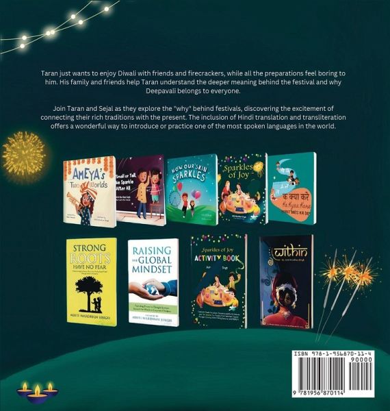 Taran just wants to party and have fun with friends on Diwali. All the cleaning, shopping, and cooking feels boring to him. Will his family and friends be able to help Taran see the deeper meaning behind the festival and the many reasons it is celebrated around the world? Join Taran as he discovers why Deepavali belongs to everyone. Hindi translation and English transliteration are great ways to practice and comprehend one of the most spoken languages in the world. You can download the finger puppets shown in the book from RaisingWorldChildren.com