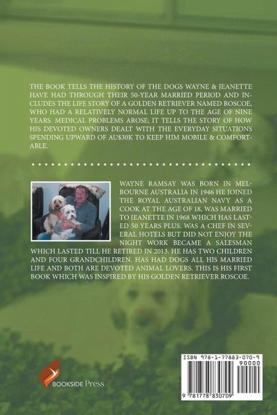 WAYNE RAMSAY WAS BORN IN MELBOURNE, AUSTRALIA IN 1946. HE JOINED THE ROYAL AUSTRALIAN NAVY AS A COOK AT THE AGE OF 18, WAS MARRIED TO JEANETTE IN 1968 WHICH HAS LASTED 50 YEARS PLUS, WAS A CHEF IN SEVERAL HOTELS BUT DID NOT ENJOY THE NIGHT WORK, BECAME A SALESMAN WHICH LASTED TILL HE RETIRED IN 2013. HE HAS TWO CHILDREN AND FOUR GRANDCHILDREN, HAS HAD DOGS ALL HIS MARRIED LIFE AND BOTH ARE DEVOTED ANIMAL LOVERS. THIS IS HIS FIRST BOOK WHICH WAS INSPIRED BY HIS GOLDEN RETRIEVER ROSCOE.