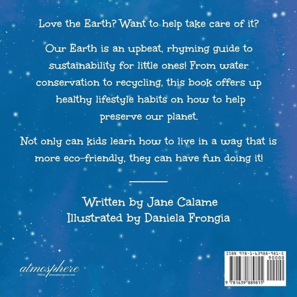 Love the Earth? Want to help take care of it? Our Earth is an upbeat, rhyming guide to sustainability for little ones! From water conservation to recycling, this book offers up healthy lifestyle habits on how to help preserve our planet. Not only can kids learn how to live in a way that is more eco-friendly, they can have fun doing it!