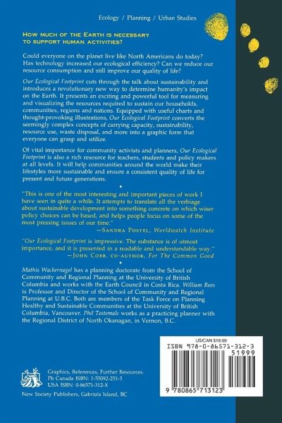 Equipped with useful charts and thought-provoking illustrations, this book introduces a revolutionary new way to determine humanity's impact on the Earth and presents an exciting and powerful tool for measuring and visualizing the resources required to sustain households, communities, regions, and nations.Our Ecological Footprint presents an internationally-acclaimed tool for measuring and visualizing the resources required to sustain our households, communities, regions and nations, converting the seemingly complex concepts of carrying capacity, resource-use, waste-disposal and the like into a graphic form that everyone can grasp and use. An excellent handbook for community activists, planners, teachers, students and policy makers.