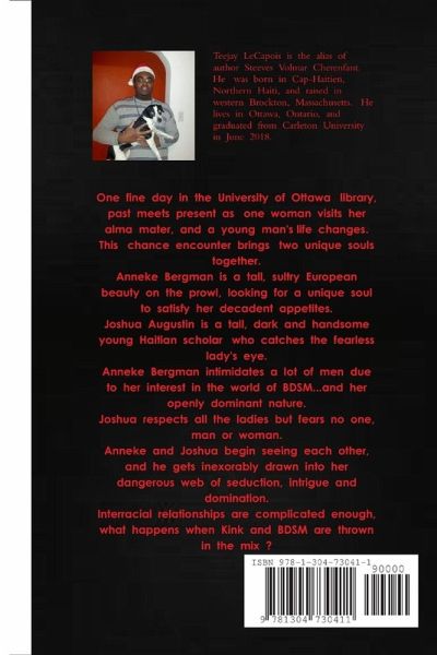 Anneke "Kiki" Bergman is a six-foot-tall, sultry German-Canadian blonde beauty who visits her alma mater, the University of Ottawa, after a two-decade absence. Joshua Augustin is the tall, handsome young Haitian scholar whom she meets while striding through the campus library. The two of them become friends, and eventually, lovers. Anneke Bergman's alter ego, Mistress Kiki the Dominatrix, comes out to play. Interracial relationships are hard enough, Kink and BDSM are sure to complicate things further for these two lovebirds. Can the handsome but naive Joshua handle what the bold and kinky Anneke throws his way ?
