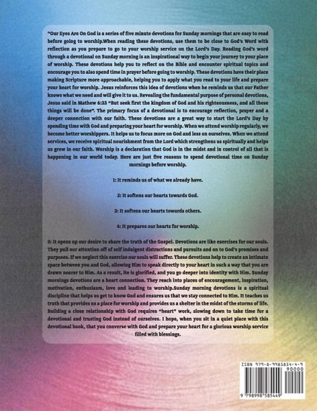 In this heartfelt collection of worship reflections, the author invites readers into a sacred space of spiritual contemplation-one Sabbath at a time. Each devotional begins with the intimate phrase "As I prepare for worship today...", offering profound yet accessible insights drawn from everyday moments: a shoveled path to the mailbox, summer vneeding rain, or the quiet realization of life's second chances. Through 52 weekly meditations, this book explores:The beauty of spiritual gifts (1 Corinthians 7:7) The danger of "spiritual winters" (Matthew 4:4) Our heavenly inheritance (John 1:12) Walking the narrow path (Matthew 7:13-14) The grace of new beginnings (1 John 1:9) With Scripture woven seamlessly into life's ordinary metaphors-sinking boats, unwatered gardens, and bridges of faith-these reflections reveal how God meets us in the mundane.