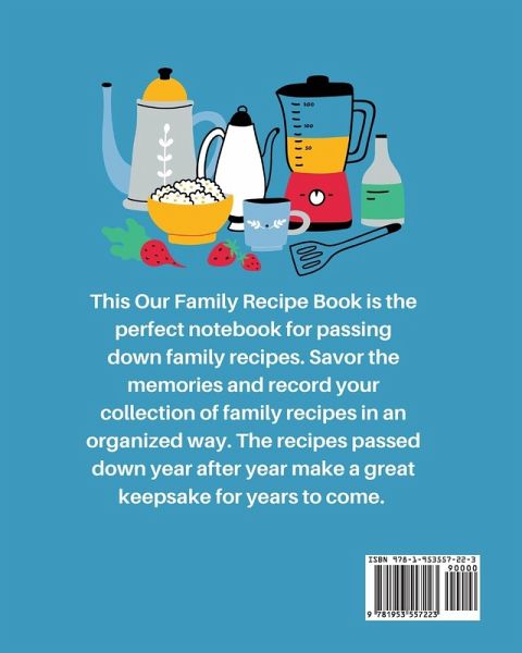This Recipe Book is the perfect notebook for passing down family recipes. Savor the memories and record your collection of family recipes in an organized way. Recipes passed down year after year make a great keepsake for years to come. Share this book with Mom and have her jot down your childhood favorites. Features:Table of Contents 102 recipe pages Space to for servings, prep time, and cook time Plenty of space for ingredients and directions From the Kitchen of: Place for notes Numbered pages Details:Size: 8" x10" Pages: 112 Paperback Matte finish Order this book today to start writing down your favorite recipes. Perfect gift for the whole family. Great gift for mom, so she can write down your favorite childhood recipes.