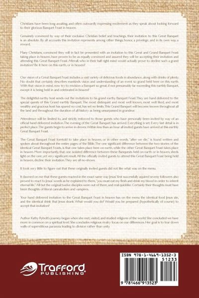 Christians have been long awaiting, and outwardly expressing excitement as they speak about looking forward to their awaited Banquet Feast in heaven. Genuinely convinced by way of their exclusive Christian beleif,their invitation to this Great Banquet is an absolute. By all accounts this invitation represents among other things; honor, a privelege, and in its own way, a reward. These exclusive Christians, convinced they will in fact be presented with an invitation to this Great and Grand Banquet Feast taking place in heaven, they have proven to be as equally convinced and assured they will be accepting their invitation and attending this Great Banquet Feast. Afterall, who in their half right mind would actually prove to decline such a grand invitation? Be it here on this earth, or in heaven? Our vision of a Great Banquet Feast includes a vast variety of delicious foods in abundance, along with drinks of plenty.No doubt that certainly describes mankinds vision and understanding of an event so grand held here on this earth. With that vision in mind, now try to envision a Banquet so great, if not presumably far exceeding this earthly Banquet, except it is being held in and celebrated in heaven? Invitations are sent out. They are hand delivered to the special quests of this Grand earthly Banquet. The most distinquist and most well known, most well liked, and most wealthy and gracious host has spared no cost, has set no limits. This Grand Banquet will become known throughout all the land and throughout the duration of all history as being unsurpassed in grandeur. Attendence will be limited to, and strictly enforced to those guests who have personally been invited by way of an official hand delivered invitation. The evening of the Great Banquet has arrived. Everything is set. Every last detail is in perfect place. The guests begin to arrive in droves. Within less than an hour all invited guests have arrived at this earthly Great Banquet Feast. The Great Banquet Feast foretold to take place in heaven, or in other words, "after we die," is found written and spoken about throughout the entire pages of the Bible. The one significant difference between the two stories of the identical Great Banquet Feasts, is that one takes place here on earth in heaven. More importantly, that one isolated difference between these Banquests held on earth or in heaven, sheds light on the one, yet very significant result. All the officially invited guests to attend this Great Banquet Feast being held in heaven, decline their invitation. They are all no-shows. It took very little to figure out that these originally invited guests did not like what was on the menu. It dawned on me that these guests reacted in the exact same way Jesus' first successfully aquired seveny followers also proved to react to Jesus' words as he explained to them, "you must eat my flesh and drink my blood in order to inherit eternal life." All but the original twelve disciples were out of there, and real quicklike. Certainly their thoughts must have been thoughts of literal cannabolism and vampires. Your hand delivered invitation to the Great Banquet Feast in heaven has on the menu the identical food Jesus ate, and the identical drink that Jesus drank. What would you do? Would you be prepared (hypothetically of course) to accept that invitation?