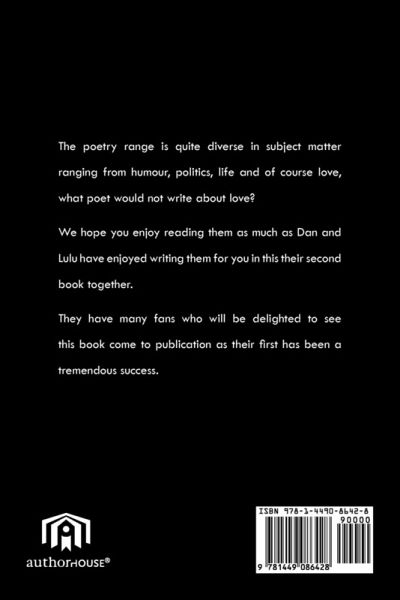 The poetry range is quite diverse in subject matter ranging from humour, politics, life and of course love, what poet would not write about love? We hope you enjoy reading them as much as Dan and Lulu have enjoyed writing them for you in this their second book together. They have many fans who will be delighted to see this book come to publication as their first has been a tremendous success.