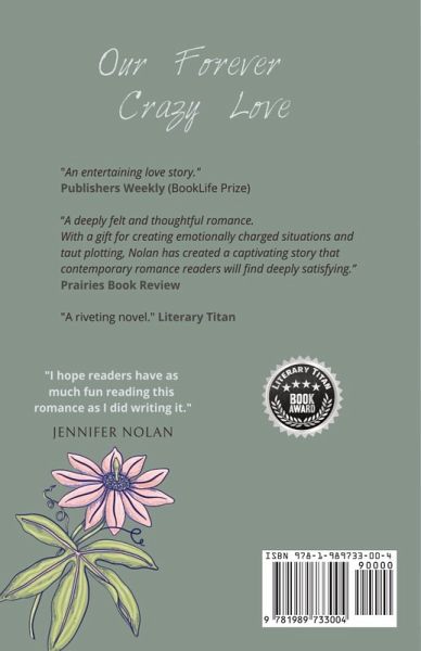 Jennifer Nolan is an award winning author who began her publishing career over two decades ago. During this time, she has written more than twenty non-fiction titles (under a couple of different pseudonyms) that stretch across multiple genres. Taking a leap into the world of fiction, Nolan masterfully pens this contemporary romance in a style all her own. Successfully creating compelling characters with real, everyday problems resulting in an unforgettable debut novel. Our Forever Crazy Love takes place in beautiful Savannah, Georgia, far from the author's own home in Ontario, Canada where she resides with her husband of almost thirty years.