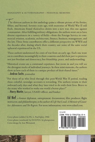 Seventy years ago, with memories of World War II still fresh, Americans found themselves drawn into a new war, this one against communism. The war in Korea and McCarthyism at home meant that young men coming of age in the 1950s and 60s were called upon to serve their country. Ten authors look back on their formative years in the fifties and find moments of fear and frustration, but also rebellion and good fun. After fulfilling their military obligations, these men went on to have diverse experiences in a variety of fields-from the Foreign Service to commercial aviation, academia, architecture, business, finance, management, and the law. Three additional authors offer an international perspective on those years. They grew up in Switzerland with war-time scarcity and conservative values and came to embrace the social movements in Europe in the sixties, especially the increasing rights of women. The thirteen authors in this anthology paint a vibrant picture of the forties, fifties, and beyond. They faced similar experiences, but their unique sets of ideas and talents led them down remarkably different paths. Growing up in the shadow of World War II, these authors understood the costs of war from an early age. Each one went on to contribute meaningfully to their countries and did their part to promote not just freedom and democracy, but friendship, peace, and understanding. The anthology includes personal essays by: Ed Nef, Paul Doherty, George Proctor, Mike Dow, John Arnold, Gary Cunningham, Doug Hartley, George S.K. Rider, William (Billy) Ming Sing Lee, Steve Young, Robert Nef, Maja Nef, and Erica Kuster-Nef.