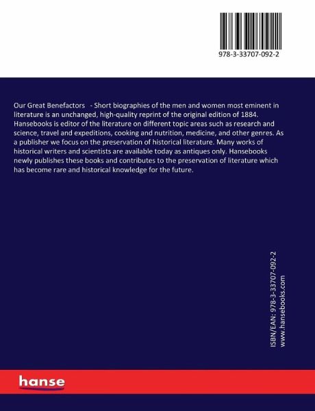 Our Great Benefactors - Short biographies of the men and women most eminent in literature is an unchanged, high-quality reprint of the original edition of 1884.
