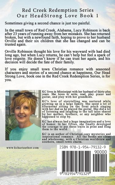 Sometimes giving a second chance is just too painful. In the small town of Red Creek, Alabama, Lucy Robinson is back after 23 years of running away from her mistakes. She has returned broken, but with a newfound faith, hoping to prove to her husband Orville and their six children that she has changed and can be trusted again. Orville Robinson thought his love for his wayward wife had died long ago, but when Lucy returns, he can't help but feel a spark of love reignite. He doesn't know if he can trust her again, and his decision will decide the fate of their family. If you enjoy small town Christian romance with seasoned characters and stories of a second chance at happiness, Our Head Strong Love, book one in the Red Creek Redemption Series, is for you.