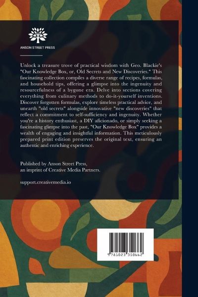 Unlock a treasure trove of practical wisdom with Geo. Blackie's "Our Knowledge Box, or, Old Secrets and New Discoveries." This fascinating collection compiles a diverse range of recipes, formulas, and household tips, offering a glimpse into the ingenuity and resourcefulness of a bygone era. Delve into sections covering everything from culinary methods to do-it-yourself inventions. Discover forgotten formulas, explore timeless practical advice, and unearth "old secrets" alongside innovative "new discoveries" that reflect a commitment to self-sufficiency and ingenuity. Whether you're a history enthusiast, a DIY aficionado, or simply seeking a fascinating glimpse into the past, "Our Knowledge Box" provides a wealth of engaging and insightful information. This meticulously prepared print edition preserves the original text, ensuring an authentic and enriching experience. This work has been selected by scholars as being culturally important, and is part of the knowledge base of civilization as we know it. This work is in the public domain in the United States of America, and possibly other nations. Within the United States, you may freely copy and distribute this work, as no entity (individual or corporate) has a copyright on the body of the work. Scholars believe, and we concur, that this work is important enough to be preserved, reproduced, and made generally available to the public. We appreciate your support of the preservation process, and thank you for being an important part of keeping this knowledge alive and relevant.