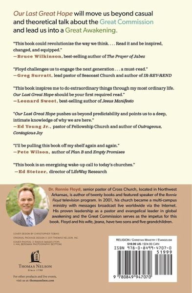 Join pastor Ronnie Floyd as he challenges readers to face reality and begin a global movement to reach the lost. He says, 'God is calling us to an awakening regarding his most urgent command found in Matthew 28:19 to go and make disciples of all nations. This Great Commission is the compelling charge given to us with divine authority by our Commander in Chief, Jesus Christ.'