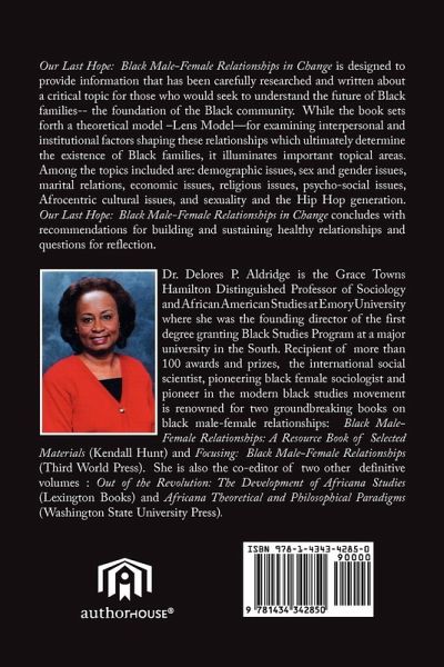 Our Last Hope: Black Male-Female Relationships in Change is designed to provide information that has been carefully researched and written about a critical topic for those who would seek to understand the future of Black families-- the foundation of the Black community. While the book sets forth a theoretical model -Lens Model-for examining interpersonal and institutional factors shaping these relationships which ultimately determine the existence of Black families, it illuminates important topical areas. Among the topics included are: demographic issues, sex and gender issues, marital relations, economic issues, religious issues, psycho-social issues, Afrocentric cultural issues, and sexuality and the Hip Hop generation. Our Last Hope: Black Male-Female Relationships in Change concludes with recommendations for building and sustaining healthy relationships and questions for reflection.
