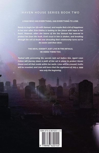 "A man that has everything, has everything to lose." Ready to begin her life with Samuel, and maybe find a bit of happiness in her ever after, Evangeline Eddins is looking to the future with hope in her heart. However, when she learns of the lies Samuel has weaved to protect her from the truth, Evie's trust in him is shaken, and breaking through the veil of doubt now shrouding their relationship turns out to be easier said than done. "The devil doesn't just live in the details, he hides there too." Tasked with unraveling the secrets laid out before him, Agent Liam Cohen will journey down a path of lies set in place to protect Haven House and all that reside within her walls. Lines will be crossed, truths will be revealed, and Liam will learn that the nightmare of July 4, 1999, was only the beginning. Our Lips Are Sealed is part two of a duology in the Haven House series and cannot be read as a standalone. The novel deals with adult themes and is intended for 18+ readers. Content warnings can be found on the author's website.