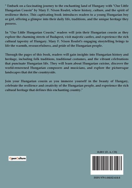 "Our Little Hungarian Cousin" by Mary F. Nixon-Roulet is a captivating tale that follows the adventures of Banda Bela, a young Gypsy boy, and Marushka, a mysterious little girl with golden hair, as they navigate life in Hungary. The story begins with Banda Bela, a talented violinist, who finds himself in a Gypsy camp after being orphaned. He quickly forms a bond with Marushka, a child found by the Gypsies and believed to be of noble descent. The narrative unfolds as the Gypsy camp moves across the Hungarian plains, showcasing the vibrant culture and traditions of the Tziganes. Banda Bela's life takes a turn when the Gypsies abandon him and Marushka. They are taken in by a kind shepherd and his wife, who offer them a home in the village of Harom-Szoeloehoz. Here, Banda Bela learns the value of hard work, tending to pigs, while Marushka becomes a goose girl. The village life is depicted with rich details, from the bustling market fairs to the traditional Hungarian customs. Banda Bela's musical talent becomes a bridge between his past and his new life, earning him admiration and a sense of belonging. The story is a vivid portrayal of the Hungarian landscape and the diverse people who inhabit it. It highlights themes of friendship, resilience, and the search for identity. Through Banda Bela and Marushka's journey, readers are introduced to the beauty and complexity of Hungarian culture, as well as the universal quest for home and family.