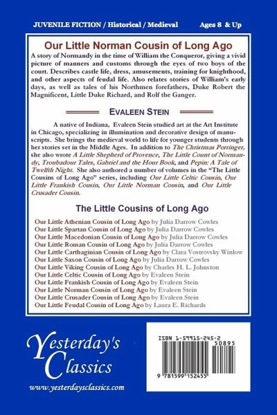A story of Normandy in the time of William the Conqueror, giving a vivid picture of manners and customs through the eyes of two boys of the court. Describes castle life, dress, amusements, training for knighthood, and other aspects of feudal life. Also relates stories of William's early days, as well as tales of his Northmen forefathers, Duke Robert the Magnificent, Little Duke Richard, and Rolf the Ganger. Suitable for ages 8 and up.