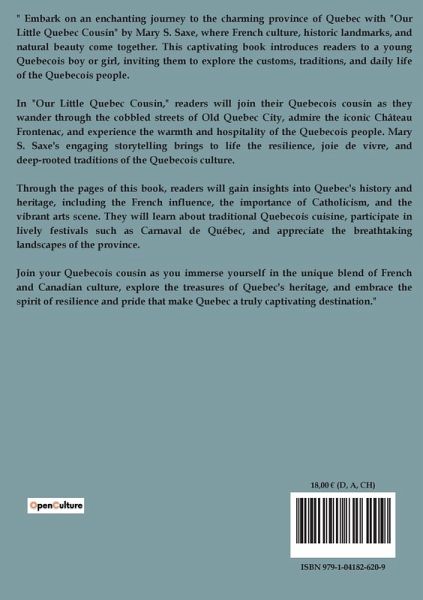 "Our Little Quebec Cousin" by Mary S. Saxe is a charming exploration of the life and culture of a young French Canadian girl named Oisette Mary Tremblent, set in the early 20th century in the province of Quebec. The narrative provides a vivid depiction of Oisette's daily life, her family, and the cultural traditions that shape her upbringing. The story begins with a description of Oisette's family and their life in the village of Cote-des-Neiges, near Montreal. The Tremblent family is portrayed as deeply rooted in their French Canadian heritage, with strong ties to their Catholic faith and community. The narrative highlights the importance of religious and cultural traditions, such as the celebration of First Communion and the Midnight Mass on Christmas Eve, which are significant events in Oisette's life. The book also delves into the interactions between the French and English-speaking communities, as seen through Oisette's friendship with the Dudley children, who are English-speaking neighbors. This relationship provides a lens through which the reader can observe the cultural exchanges and differences between the two communities. The story is rich with descriptions of the Quebec landscape, the bustling Bonsecour Market, and the historical sites of Montreal, such as the Château de Ramezay. These elements serve to immerse the reader in the setting and provide a historical context for the narrative. Through Oisette's eyes, readers experience the joys of childhood, the warmth of family life, and the vibrant cultural tapestry of Quebec. The book is not only a delightful tale of a young girl's adventures but also an insightful portrayal of the cultural heritage and traditions of French Canadians in Quebec.
