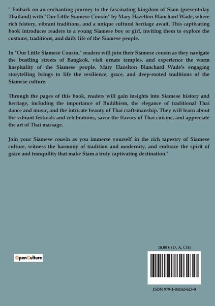 What if you could step into the shoes of a young child from a distant land, experiencing their culture and daily life firsthand? "Our Little Siamese Cousin" by Mary Hazelton Blanchard Wade offers readers this unique opportunity, transporting them to the enchanting world of early 20th-century Siam, now known as Thailand. This narrative invites readers to explore the vibrant traditions, customs, and landscapes of a country rich in history and culture. Through the eyes of a young Siamese child, the book paints a vivid picture of life in a land where ancient temples stand alongside bustling markets, and where the rhythms of the Chao Phraya River dictate the pace of life. Set against the backdrop of a rapidly changing world, this cultural exploration delves into themes of tradition, family, and the innocence of childhood. The narrative captures the essence of Siamese society, highlighting the importance of family ties, respect for elders, and the harmonious coexistence with nature. Readers will find themselves immersed in the daily activities of the protagonist, from participating in traditional festivals to learning about the significance of Buddhism in Siamese life. Mary Hazelton Blanchard Wade's work serves as a window into a world that may seem distant yet is filled with universal themes of curiosity and learning. By presenting a child's perspective, the book encourages readers to appreciate the beauty of cultural diversity and the shared human experience. Through the detailed descriptions and engaging storytelling, "Our Little Siamese Cousin" offers a journey that enriches our understanding of a fascinating culture and era.