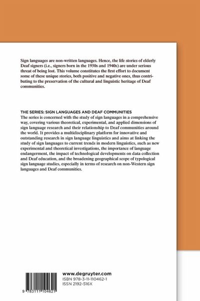 The chapters compiled in this volume document important aspects of past and present experiences of elderly Deaf signers across Europe, as well as in Israel and the United States. Issues addressed include (i) historical events and how they were experienced by Deaf people, (ii) issues of identity and independence, (iii) aspects of language change, (iv) experiences of suppression and discrimination. The stories shared by elderly signers reveal intriguing, yet hidden, aspects of Deaf life. On the negative side, these include experiences of the Deaf in Nazi Germany and occupied countries and harsh practices in educational settings, to name a few. On the positive side, there are stories of resilience and vivid memories of school years and social and professional life.