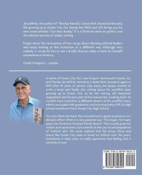 Jim Jeffries, the author of "The Bay Rat Kid," a book that chronicled his early life growing up in Ocean City, N.J. during the 1940's and 50's brings you his new novel entitled "Our Man Buddy." It is a fictional satire on politics and the election process in today's setting. Forget about the seriousness of how we go about electing political leaders and enjoy looking at this institution in a different way. Although very unlikely, it would be fun to see a Buddy Duncan make a name for himself somewhere in America. Could it happen?... maybe.