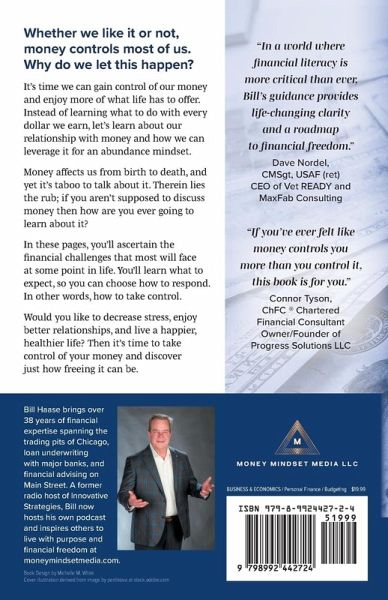 Whether we like it or not, money controls most of us. Why do we let this happen? It's time we can gain control of our money and enjoy more of what life has to offer. Instead of learning what to do with every dollar we earn, let's learn about our relationship with money and how we can leverage it for an abundance mindset. Money affects us from birth to death, and yet it's taboo to talk about it. Therein lies the rub; if you aren't supposed to discuss money then how are you ever going to learn about it? In these pages, you'll ascertain the financial challenges that most will face at some point in life. You'll learn what to expect, so you can choose how to respond. In other words, how to take control. Would you like to decrease stress, enjoy better relationships, and live a happier, healthier life? Then it's time to take control of your money and discover just how freeing it can be.