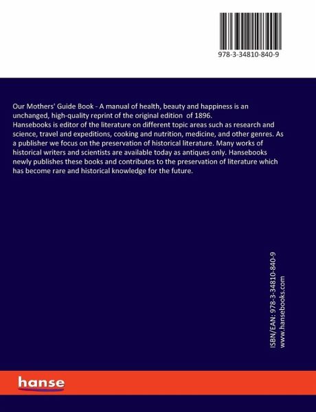 Our Mothers' Guide Book - A manual of health, beauty and happiness is an unchanged, high-quality reprint of the original edition of 1896.Hansebooks is editor of the literature on different topic areas such as research and science, travel and expeditions, cooking and nutrition, medicine, and other genres. As a publisher we focus on the preservation of historical literature. Many works of historical writers and scientists are available today as antiques only. Hansebooks newly publishes these books and contributes to the preservation of literature which has become rare and historical knowledge for the future.