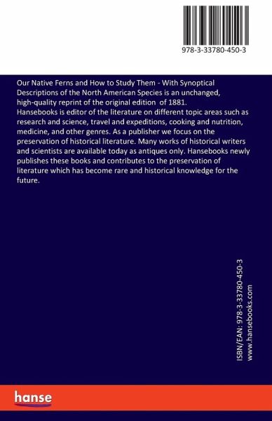 Our Native Ferns and How to Study Them - With Synoptical Descriptions of the North American Species is an unchanged, high-quality reprint of the original edition of 1881. Hansebooks is editor of the literature on different topic areas such as research and science, travel and expeditions, cooking and nutrition, medicine, and other genres. As a publisher we focus on the preservation of historical literature. Many works of historical writers and scientists are available today as antiques only. Hansebooks newly publishes these books and contributes to the preservation of literature which has become rare and historical knowledge for the future.