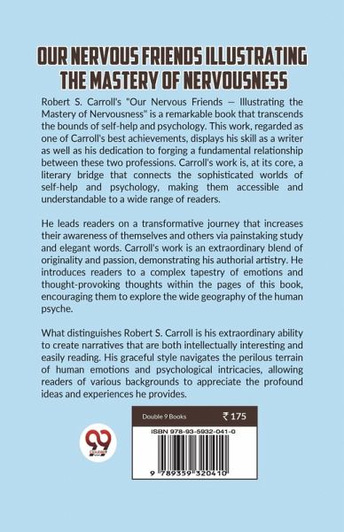 Robert S. Carroll's "Our Nervous Friends ¿ Illustrating the Mastery of Nervousness" is a remarkable book that transcends the bounds of self-help and psychology. This work, regarded as one of Carroll's best achievements, displays his skill as a writer as well as his dedication to forging a fundamental relationship between these two professions. Carroll's work is, at its core, a literary bridge that connects the sophisticated worlds of self-help and psychology, making them accessible and understandable to a wide range of readers. He leads readers on a transformative journey that increases their awareness of themselves and others via painstaking study and elegant words. Carroll's work is an extraordinary blend of originality and passion, demonstrating his authorial artistry. He introduces readers to a complex tapestry of emotions and thought-provoking thoughts within the pages of this book, encouraging them to explore the wide geography of the human psyche. What distinguishes Robert S. Carroll is his extraordinary ability to create narratives that are both intellectually interesting and easily reading. His graceful style navigates the perilous terrain of human emotions and psychological intricacies, allowing readers of various backgrounds to appreciate the profound ideas and experiences he provides.