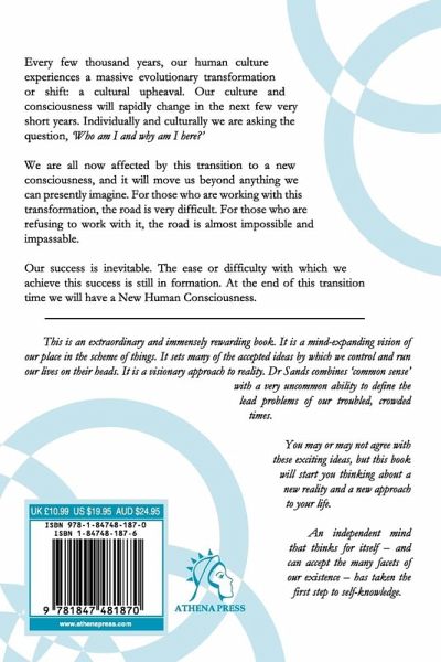 Every few thousand years, our human culture experiences a massive evolutionary transformation or shift: a cultural upheaval. Our culture and consciousness will rapidly change in the next few very short years. Individually and culturally we are asking the question, 'Who am I and why am I here?' We are all now affected by this transition to a new consciousness, and it will move us beyond anything we can presently imagine. For those who are working with this transformation, the road is very difficult. For those who are refusing to work with it, the road is almost impossible and impassable. Our success is inevitable. The ease or difficulty with which we achieve this success is still in formation. At the end of this transition time we will have a New Human Consciousness. This is an extraordinary and immensely rewarding book. It is a mind-expanding vision of our place in the scheme of things. It sets many of the accepted ideas by which we control and run our lives on their heads. It is a visionary approach to reality. Dr Sands combines 'common sense' with a very uncommon ability to define the lead problems of our troubled, crowded times. You may or may not agree with these exciting ideas, but this book will start you thinking about a new reality and a new approach to your life. An independent mind that thinks for itself - and can accept the many facets of our existence - has taken the first step to self-knowledge.
