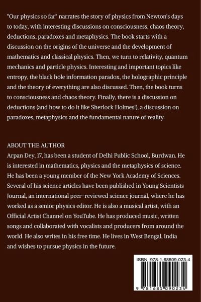 The book narrates the journey of physics and science from Newton's days to today, with interesting discussions on consciousness, chaos theory, deductions, paradoxes and an interview with renowned physicist Edward Witten. The book starts with a discussion on the origins of the universe and the development of mathematics and classical physics. Then, we look at relativity, quantum mechanics and fundamental physics. Then, the book turns to consciousness and chaos theory. Finally, there is a discussion on deductions (and how to do it like Sherlock Holmes!), and a discussion on paradoxes, metaphysics and the fundamental nature of reality.