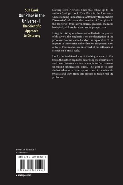 "My overall impression is of a very carefully organized book in which clear explanations are seen as the key to understanding the process by which scientific discoveries are made. ... this book is a mostly excellent, carefully constructed, step-by-step educational path through the development of the process of doing science and resulting discoveries. Sun Kwok's book provides an all-embracing view of how science has enabled a detailed description of our place in the Universe ... ." (Barry Kent, The Observatory, Vol. 142 (1291), December, 2022)