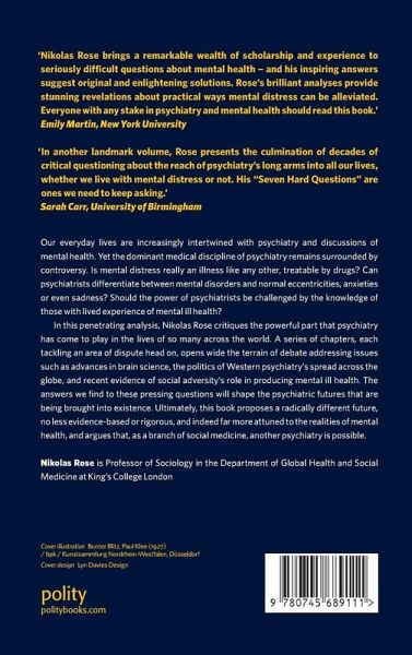 'Nikolas Rose brings a remarkable wealth of scholarship and experience to seriously difficult questions about mental health - and his inspiring answers suggest original and enlightening solutions. Rose's brilliant analyses provide stunning revelations about practical ways mental distress can be alleviated. Everyone with any stake in psychiatry and mental health should read this book.'