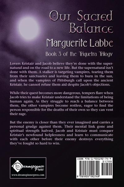Sequel to Haunted by Your SoulBook Three of the Triquetra Trilogy Lovers Kristair and Jacob believe they're done with the supernatural and on the road to a new life. But the supernatural isn't done with them. A stalker is targeting vampires, tearing them from their sanctuaries and leaving them to burn in the sun, and when the vampires of Pittsburgh call upon the ancient Kristair, he cannot refuse them aid despite Jacob's objections. While their quest becomes more dangerous, tempers flare when Jacob tries to make Kristair understand the limitations of being human again. As they struggle to reach a balance between them, the other vampires become restless, eager to find the person responsible for the deaths of their own so they can vent their rage. But the enemy is closer than they ever imagined and carries a personal grudge against them. Their mental link gone and spiritual strength halved, Jacob and Kristair must conquer Kristair's newfound helplessness and learn to communicate with each other before their enemy destroys everything they've fought so hard to win.