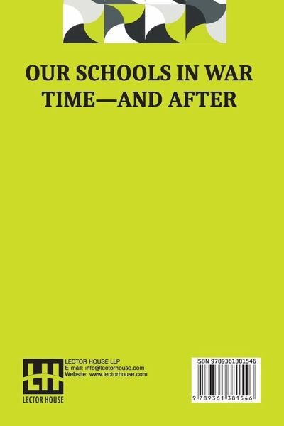 NEW PRINT WITH PROFESSIONAL TYPE-SET IN CONTRAST TO SCANNED PRINTS OFFERED BY OTHERS Our Schools In War Time And After This book is a result of an effort made by us towards making a contribution to the preservation and repair of original classic literature. In an attempt to preserve, improve and recreate the original content, we have worked towards: 1. Type-setting & Reformatting: The complete work has been re-designed via professional layout, formatting and type-setting tools to re-create the same edition with rich typography, graphics, high quality images, and table elements, giving our readers the feel of holding a fresh and newly reprinted and/or revised edition, as opposed to other scanned & printed (Optical Character Recognition - OCR) reproductions. 2. Correction of imperfections: As the work was re-created from the scratch, therefore, it was vetted to rectify certain conventional norms with regard to typographical mistakes, hyphenations, punctuations, blurred images, missing content/pages, and/or other related subject matters, upon our consideration. Every attempt was made to rectify the imperfections related to omitted constructs in the original edition via other references. However, a few of such imperfections which could not be rectified due to intentional\unintentional omission of content in the original edition, were inherited and preserved from the original work to maintain the authenticity and construct, relevant to the work.
