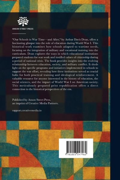 "Our Schools in War Time-and After," by Arthur Davis Dean, offers a fascinating glimpse into the role of education during World War I. This historical work examines how schools adapted to wartime needs, focusing on the integration of military and vocational training into the curriculum. Dean explores the ways in which educational institutions prepared students for war work and instilled values of citizenship during a period of national crisis. The book provides insights into the evolving relationship between education, society, and military conflict. It sheds light on the specific programs and initiatives implemented in schools to support the war effort, revealing how these institutions served as crucial hubs for both practical training and ideological reinforcement. A valuable resource for anyone interested in the history of education, the social sciences, and the impact of World War I on American society. This meticulously prepared print republication offers a direct connection to the historical perspectives of the era. This work has been selected by scholars as being culturally important, and is part of the knowledge base of civilization as we know it. This work is in the public domain in the United States of America, and possibly other nations. Within the United States, you may freely copy and distribute this work, as no entity (individual or corporate) has a copyright on the body of the work. Scholars believe, and we concur, that this work is important enough to be preserved, reproduced, and made generally available to the public. We appreciate your support of the preservation process, and thank you for being an important part of keeping this knowledge alive and relevant.