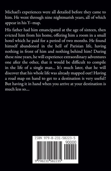 Michael's experiences were all detailed before they came to him. He went through nine nightmarish years, all of which appear in his Y--map. His father had him emancipated at the age of sixteen, then evicted him from his home, offering him a room in a small hotel which he paid for a period of two months. He found himself abandoned in the hell of Parisian life, having nothing in front of him and nothing behind him! During these nine years, he will experience extraordinary adventures one after the other, that it would be difficult to compile in the life of a single man... It's much later, that he will discover that his whole life was already mapped out! Having a road map on hand to get to a destination is very useful! But having it in hand when you arrive at your destination is much less so....