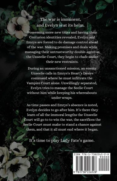 The war is imminent and Evelyn is at its helm. Possessing more new titles and having their Centurion identities revealed, Evelyn and Emrys are forced to do damage control ahead of the war. Making promises and deals while managing their untrustworthy double-agent in the Unseelie Court, they begin to chafe under their new restraints. During an unsanctioned mission, an enemy Unseelie calls in Emrys Heart's Desire command where he must infiltrate the Vampire Court alone. Unwillingly separated, Evelyn tries to manage the Seelie Court without him while keeping his whereabouts under wraps. As time passes and Emrys's absence is noted, Evelyn decides to go after him. It's there they learn of all the immoral lengths the Unseelie Court will go to to win the war, the sacrifices the Seelie Court must make to stand a chance against them, and that it all must end where it began. It's time to play Lady Fate's Game. The deadly conclusion of the Cold as Iron trilogy.