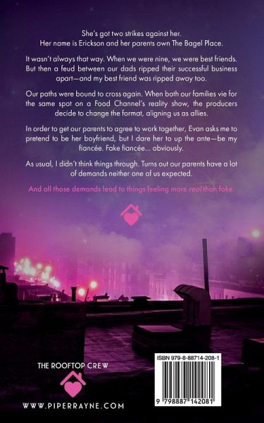 She's got two strikes against her. Her name is Erickson and her parents own The Bagel Place. It wasn't always that way. When we were nine, we were best friends. But then a feud between our dads ripped their successful business apart-and my best friend was ripped away too. Our paths were bound to cross again. When both our families vie for the same spot on a Food Channel's reality show, the producers decide to change the format, aligning us as allies. In order to get our parents to agree to work together, Evan asks me to pretend to be her boyfriend, but I dare her to up the ante-be my fiancée. Fake fiancée... obviously. As usual, I didn't think things through. Turns out our parents have a lot of demands neither one of us expected. And all those demands lead to things feeling more real than fake.