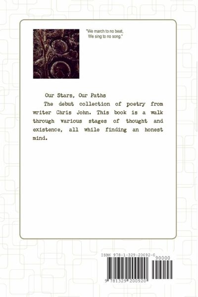 A debut collection of poetry from writer Chris John. This book is a walk through existence, thought, life and the stars around us.