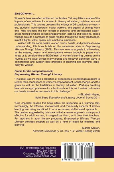 A volume in the series: Adult Education Special Topics, Research & Practice in Lifelong Learning, Series Editor: Kathleen P. King Women's lives are often written on our bodies. Yet very little is made of the impacts of embodiment for women in literacy education, both learners and professionals. This volume presents the writings of 26 contributors-teachers, students, and administrators-who examine the rich terrain of personal and professional experiences related to whole person engagement in learning and teaching. These writings provide a compass to guide readers through the bodily landscapes, mindful flights, willful spirits, and emotional embraces. Written with the same desire to open minds, hearts and practices to new understanding, this book builds on the successful style of Empowering Women through Literacy (2009). This new volume appeals to all readers, as the essays, poems, and investigations woven through its pages challenge us to consider the emBODYment of women's learning. Join us on the journey as we travel across many arenas and discover significant ways to comprehend and support best practices in teaching and learning, especially for women.