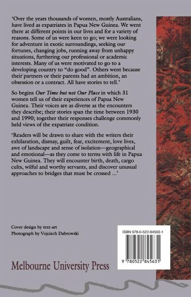This anthology challenges commonly held perceptions of expatriate women in Papua New Guinea. Over the years thousands of women, mostly Australians, have lived as expatriates in Papua New Guinea. We went there at different points in our lives and for a variety of reasons. Some of us were keen to go; we were looking for adventure in exotic surroundings, seeking our fortunes, changing jobs, running away from unhappy situations, furthering our professional or academic interests. Many of us were motivated to go to a developing country to 'do good'. Others went because their partners or their parents had an ambition, an obsession or a contract. All have stories to tell. So begins Our Time But Not Our Place in which 31 women tell us of their experiences of Papua New Guinea. Their voices are as diverse as the encounters they describe; their stories span the time between 1930 and 1990; together their responses challenge commonly held views of the expatriate condition.